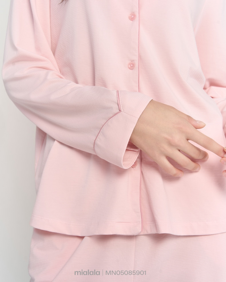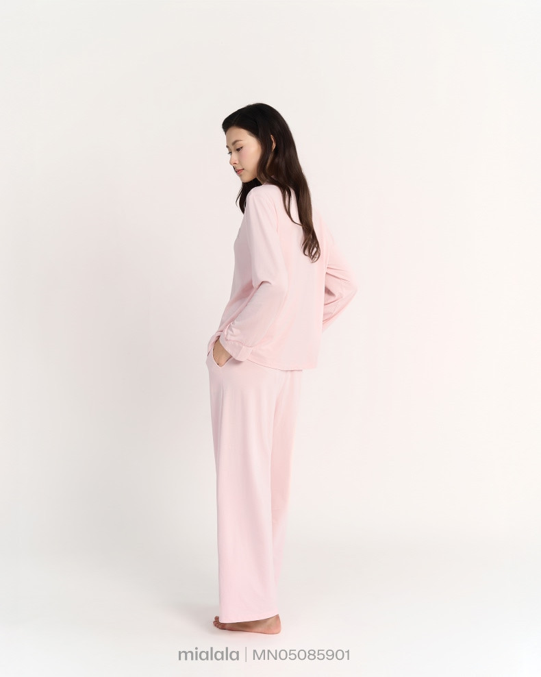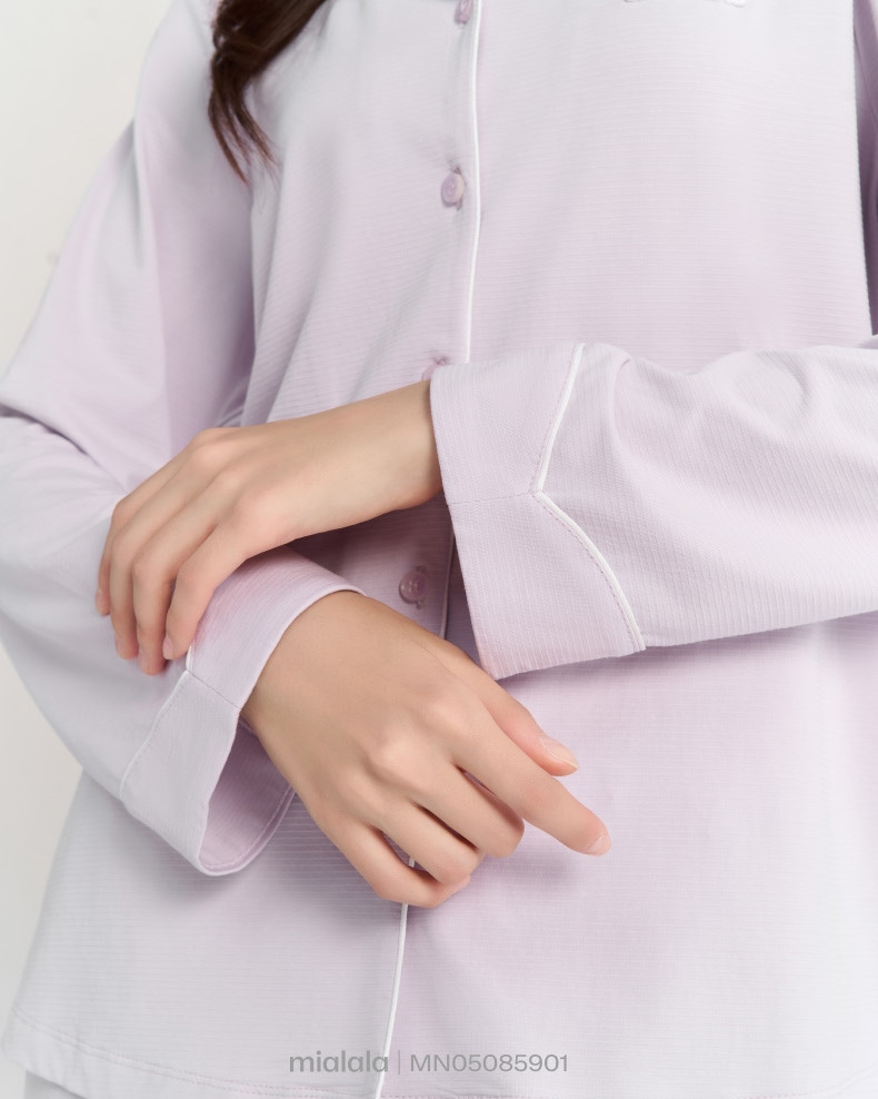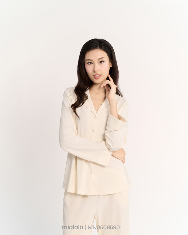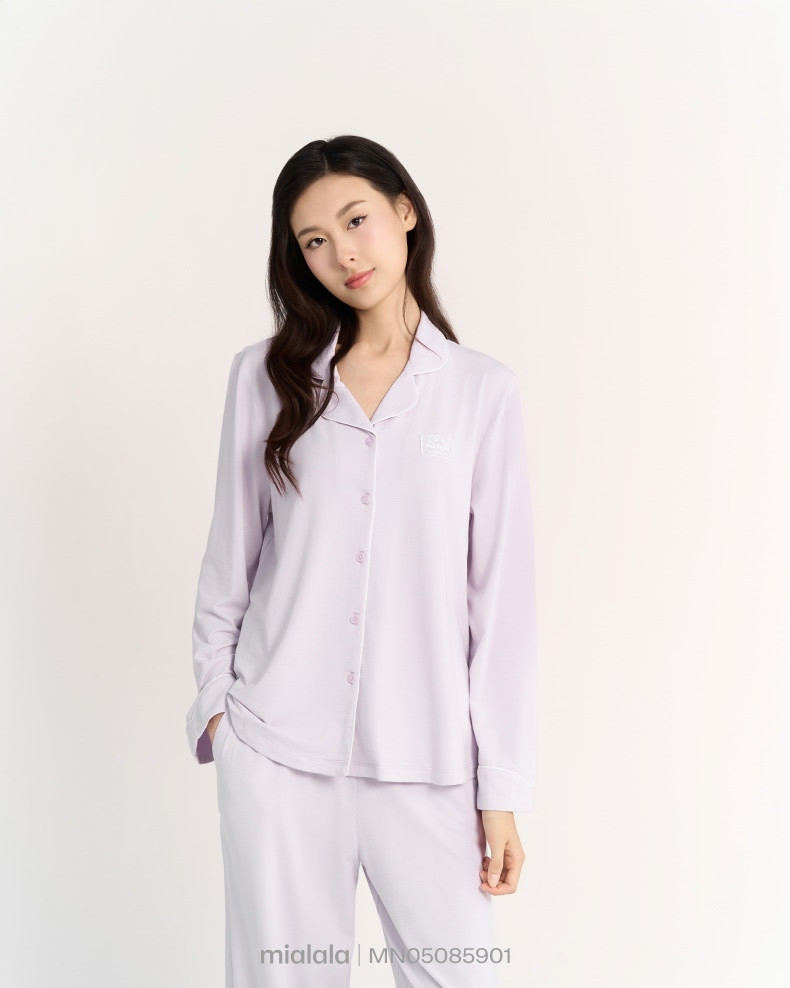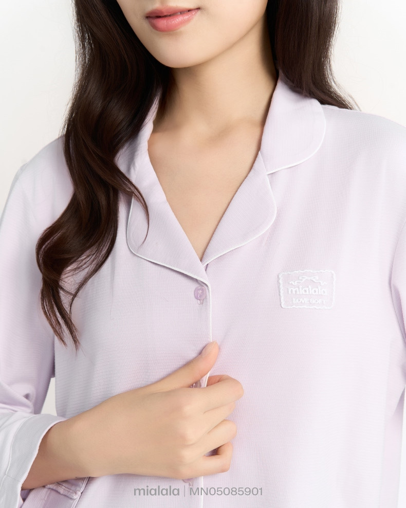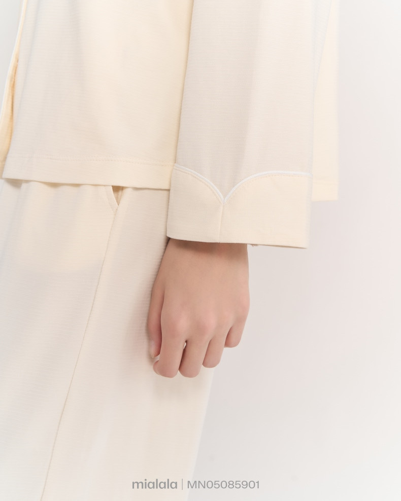 Bộ Mặc nhà TDQD MN05085901 có thiết kế cổ bẻ ve có chạy viền là form dáng signature phù hợp với nhiều dáng người, tay áo và gấu quần có điểm nhấn lơ vê 5cm thiết kế đường cong tạo sự mềm mại. Phiên bản thu đông với thiết kế tay dài, quần dài tối ưu công năng sử dụng cho khách hàng chủ đạo ngoài miền Bắc.