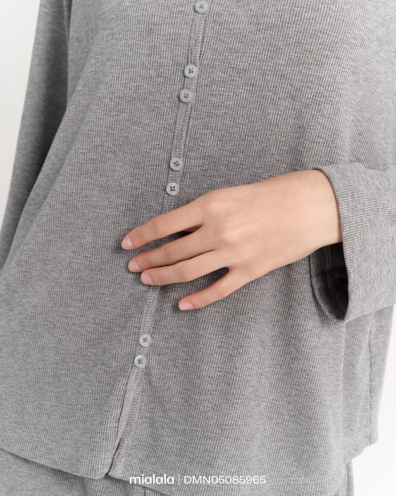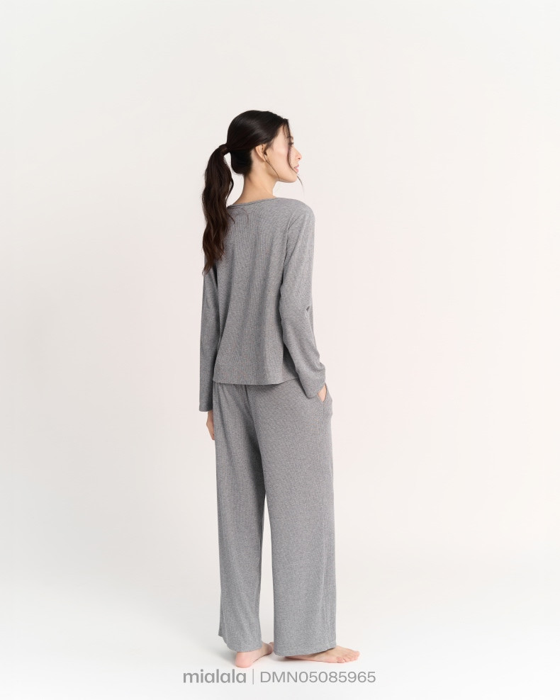Mặc nhà TDQD DMN05085965 có thiết kế cổ tim tôn dáng, điểm nhấn thiết kế đính cúc phá bỏ quy chuẩn cúc cơ bản giúp sản phẩm trông mới lạ hơn. Áo thân trước đính cúc chết, không mở được, có thể mặc chui đầu thoải mái, sản phẩm may 1 lớp. Quần có cạp chun 3cm là độ chun vừa vặn và êm, đủ dày để không gây xoắn cạp, và không quá to, không gây khó chịu cho người mặc, quần có thêm túi sườn, có thể để các vật dụng nhỏ như tiền lẻ, chìa khoá, điện thoại di động....